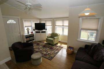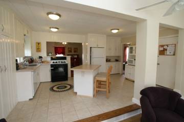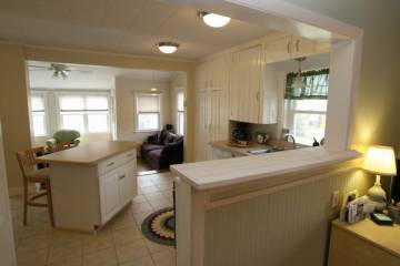 island and open floor plan to large family room with vaulted ceiling. Rear deck overlooks expansive back yard, plenty of parking, walkout
