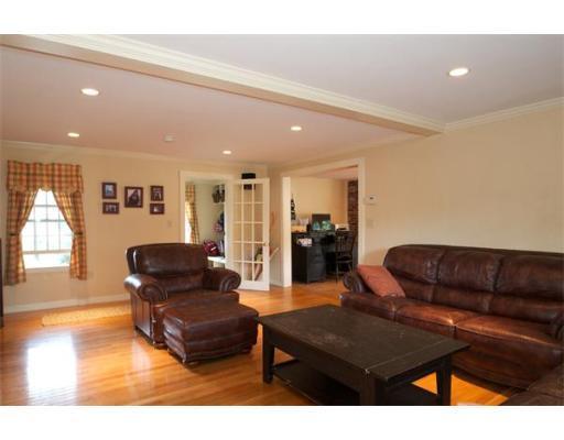 Centerville Cape expanded to accommodate growing or extended family. Center of the home is a large, gourmet, top of the line, eat-in, fireplaced kitchen w/glass doors to mahogany deck. Large, living/family room has custom built-ins, h/w floors throughout, formal dining room w/fireplace, first floor master or in-law suite, office/den, 1.5 baths & laundry on first floor. Expanded second floor has 4 bedrooms, 2 full baths, master suite w/Jacuzzi tub & dressing room. Garage,large shed & fenced yard.